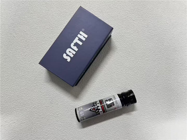大口径锥形雾状形喷雾,浓度:1.6%,喷射距离:≥3米,喷射时间:≥7秒,克重:90克,常温保存,单个货单:说明书,合格证,礼盒,湿巾,伪装贴纸2