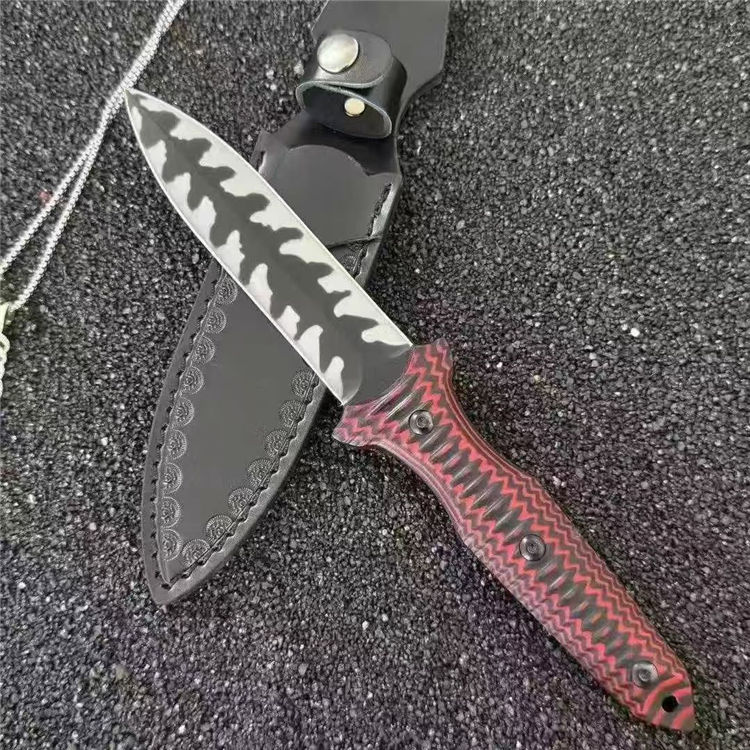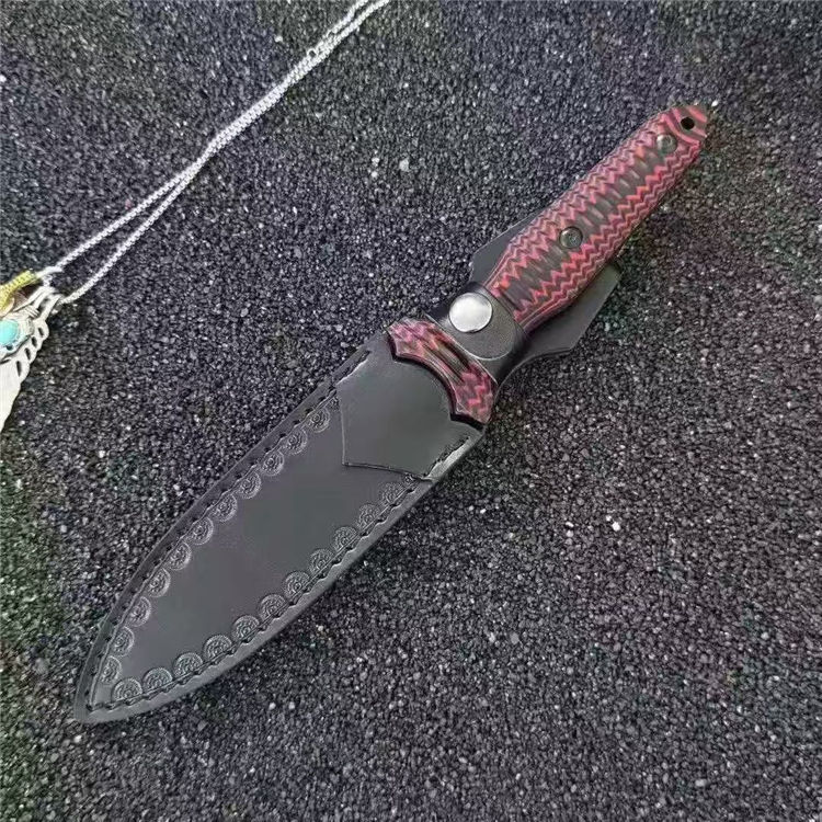 赤兔双刃直刀 全长:28.2cm 刃长:13.8cm 刃厚:4mm 刃宽:3.1cm 钢材:9CR13 柄长:14.4cm 柄材:G10 重量:234g(含套290)