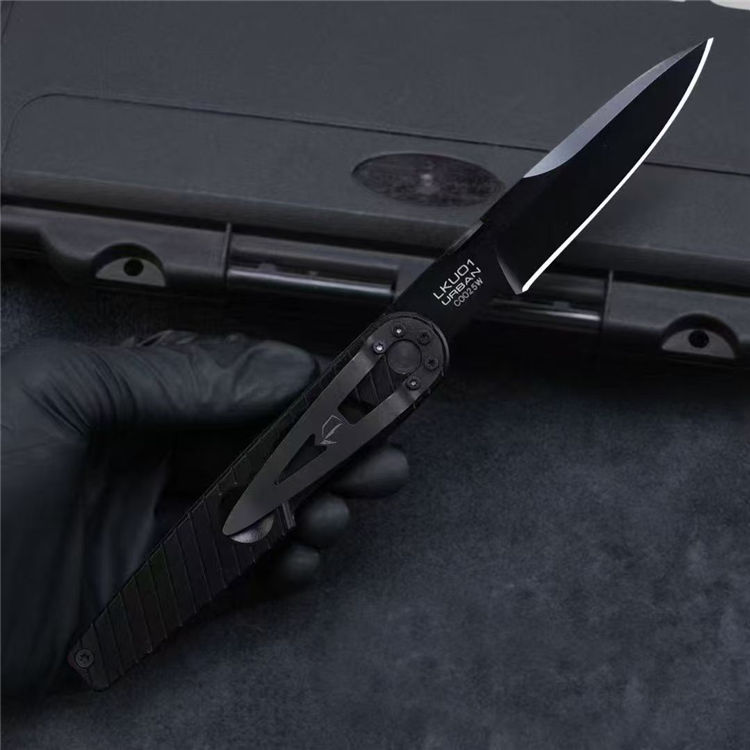 极端武力西装暴徒折刀 全长:22.2cm 刃长:8cm 刃厚:0.4cm 钢材:N690 柄材:6061航空铝 刃面:黑钛 硬度:58HRC 包装:原厂包装