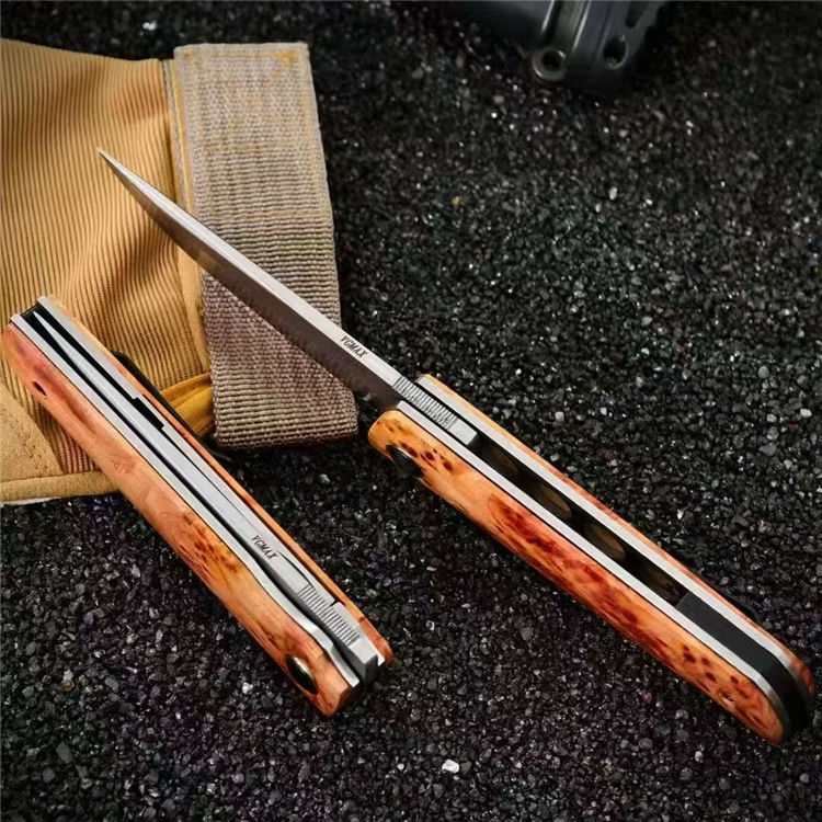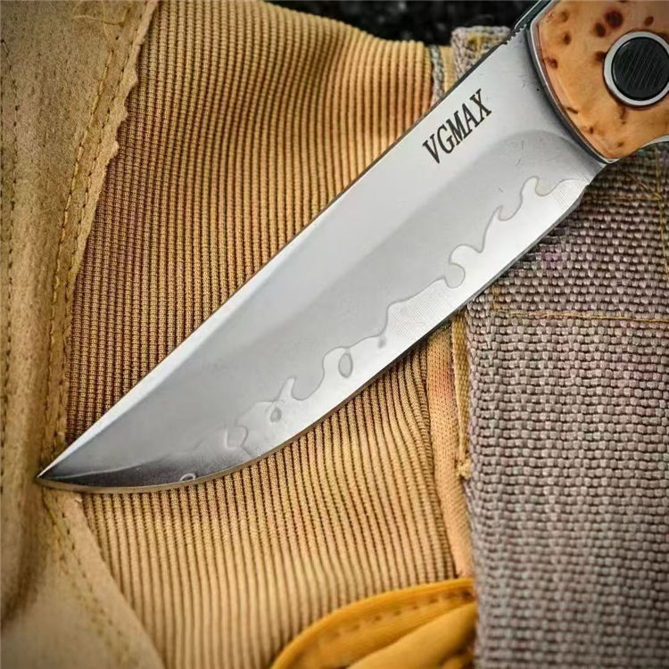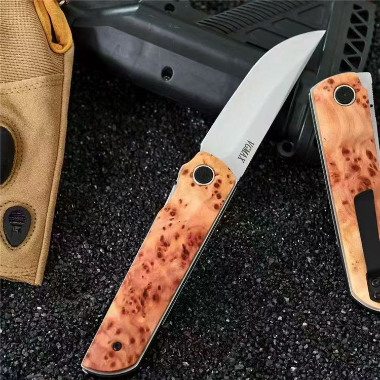 崖柏-破折刀 全长:19.3cm 刃长:8.5cm 刃厚:3.5mm 刃宽:2.3cm 钢材:VGMAX三合钢 柄材:精选崖柏木 柄长:11.3cm 硬度:60 重量:112g