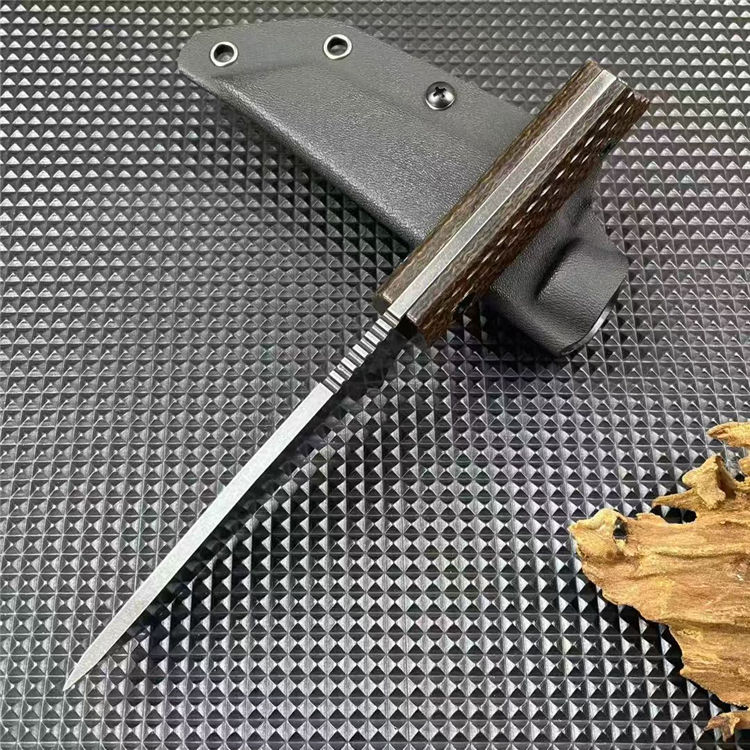 挺进者尖端丛林直刀 全长:22cm 刃宽:3.3cm 刃长:10cm 柄长:9.6cm 刃厚:4.8mm 刃材:M390 柄材:钢+亚麻 刀重:188G/253G(含梢) 毛量:352G 硬度:58-60HRC