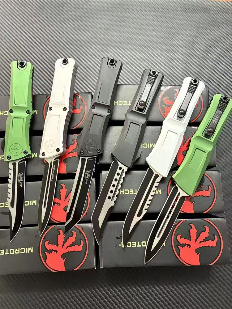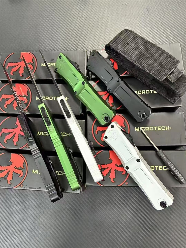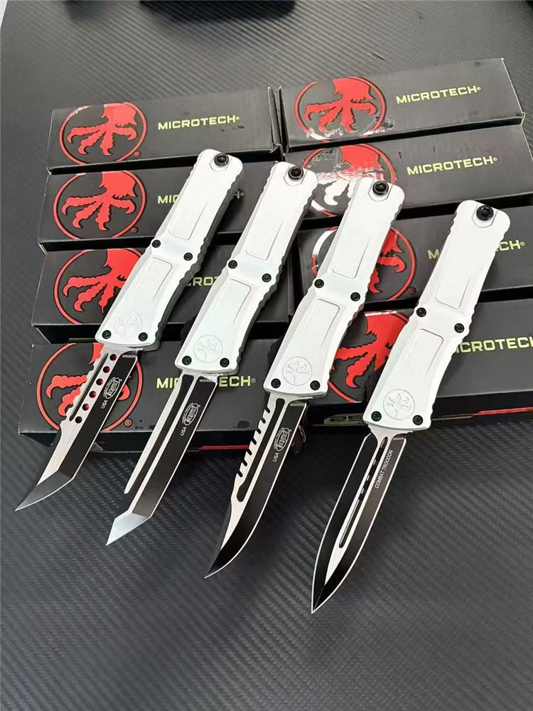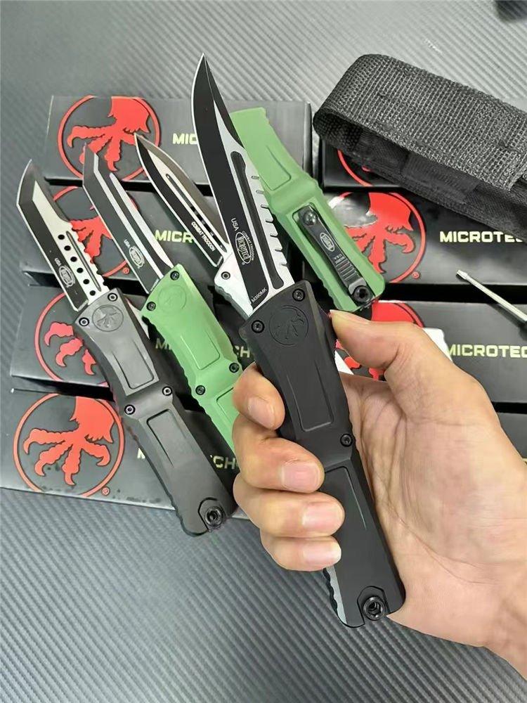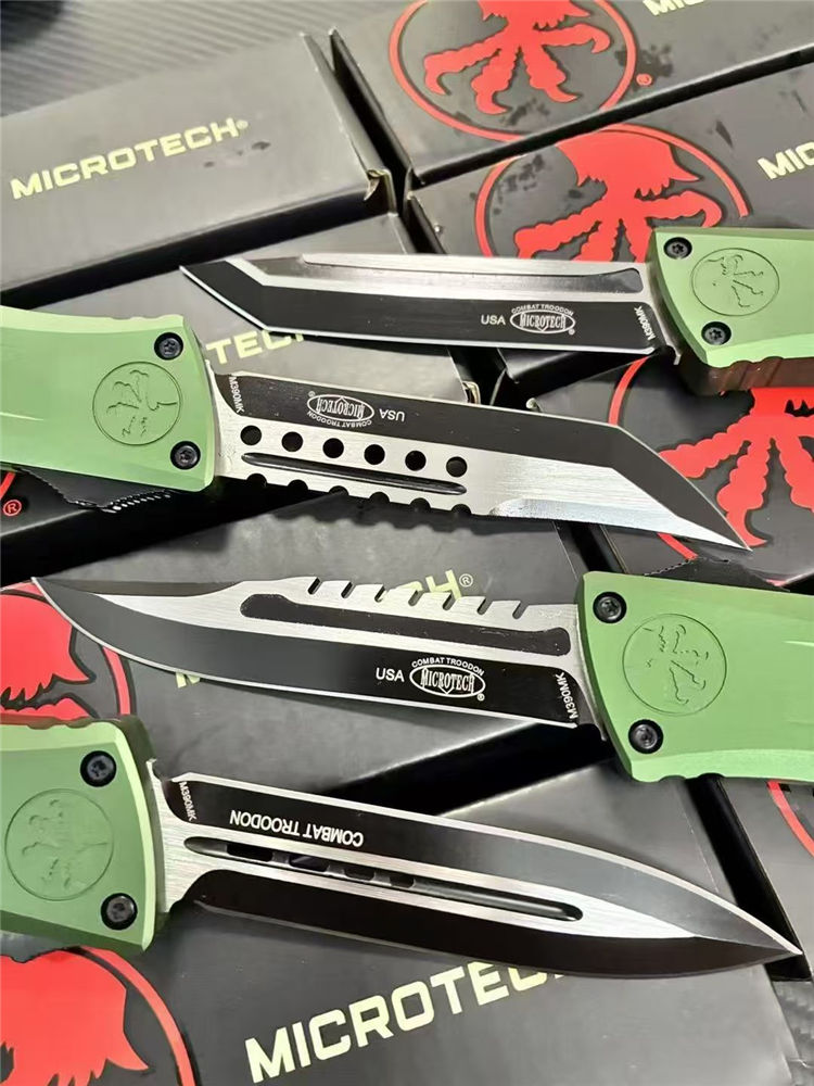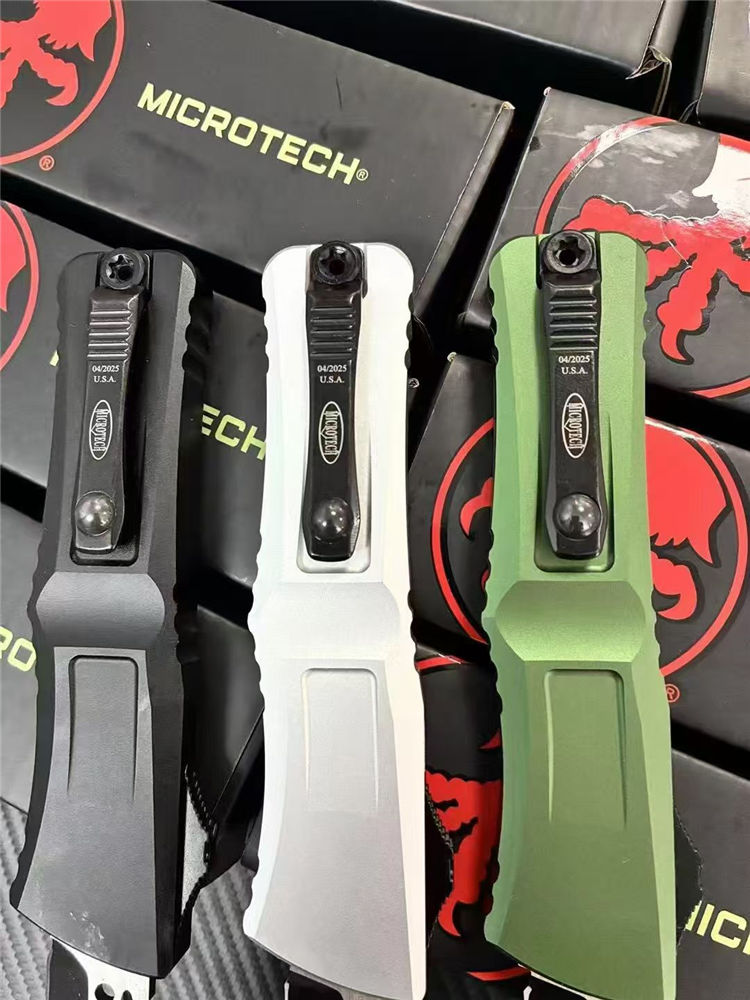 微技术大龙III代拦截者直出跳刀 全长:23cm 刃长:9.5cm 柄长:13.2cm 刃宽:2.2cm 刃厚:0.3cm 刃材:M390MK 表面:发黑拉丝 硬度:60HRC 柄材:T6061铝合金 锁定:按钮锁 净重:146克 背夹:带陶瓷滚珠 附件:尼龙套,彩盒,送拆刀工具