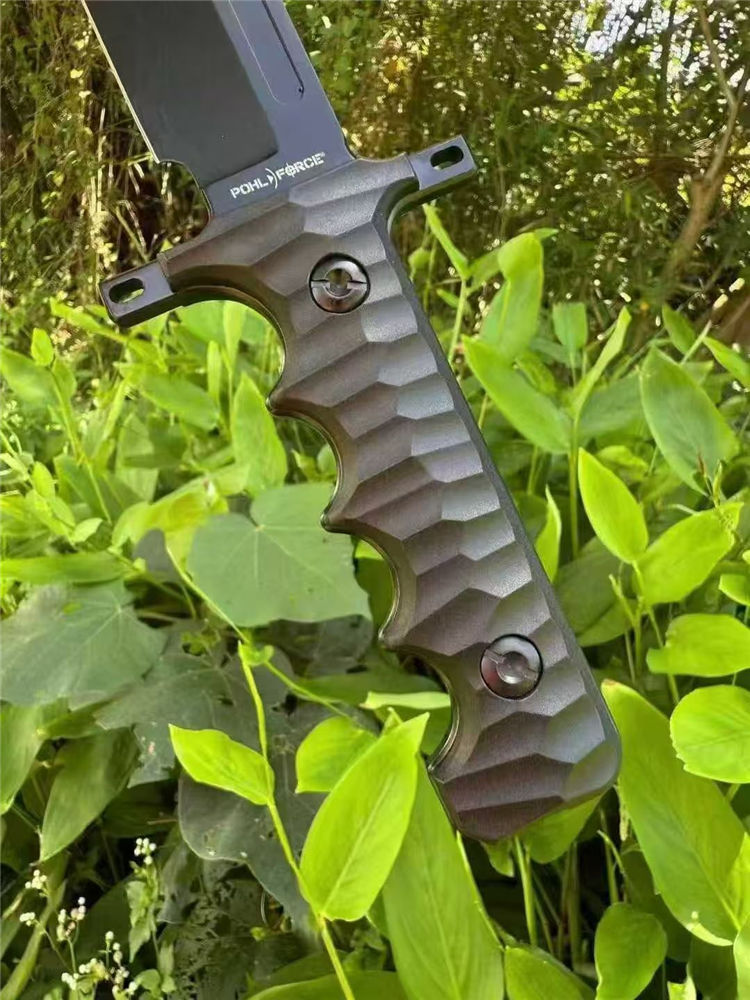 波尔武力直刀 总长:31.5cm 刃长:17cm 柄长:12.3cm 刃厚:5.8mm 刃宽:3.6cm(最宽处) 刃材:D2钢 刃面:砂光版/黑工艺处理版本 柄材:玻璃尼龙纤维 结构:一体龙骨 重量:461g(净重)599.5g(含刀鞘包装) 包装:玻纤鞘+纸盒