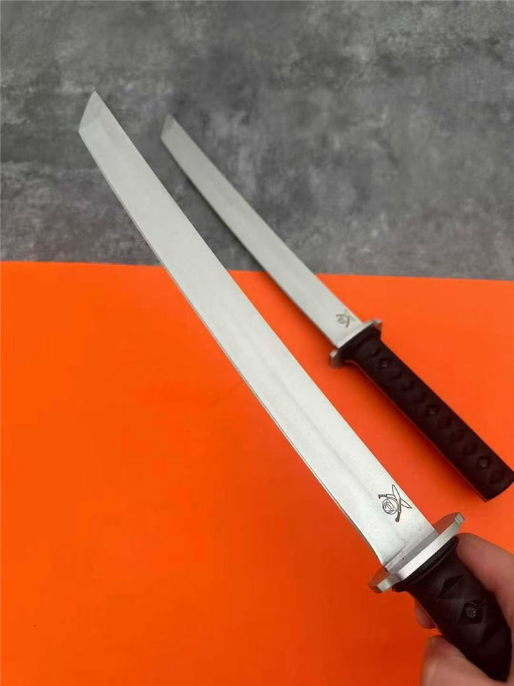 冷钢暴君小武士刀 全长:50cm 刃长:35.5cm 刃宽:3cm 刃厚:5mm 柄长:14.5cm 硬度:60HRC 材质:9CR18MOV 柄材:Kray-Ex 硬度:59-60 重量:裸刀525g