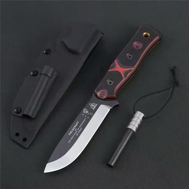 类型:生存刀,自带KYDEX刀鞘+打火石镁棒,佩戴方式,钢制360度灵活旋转皮带夹子