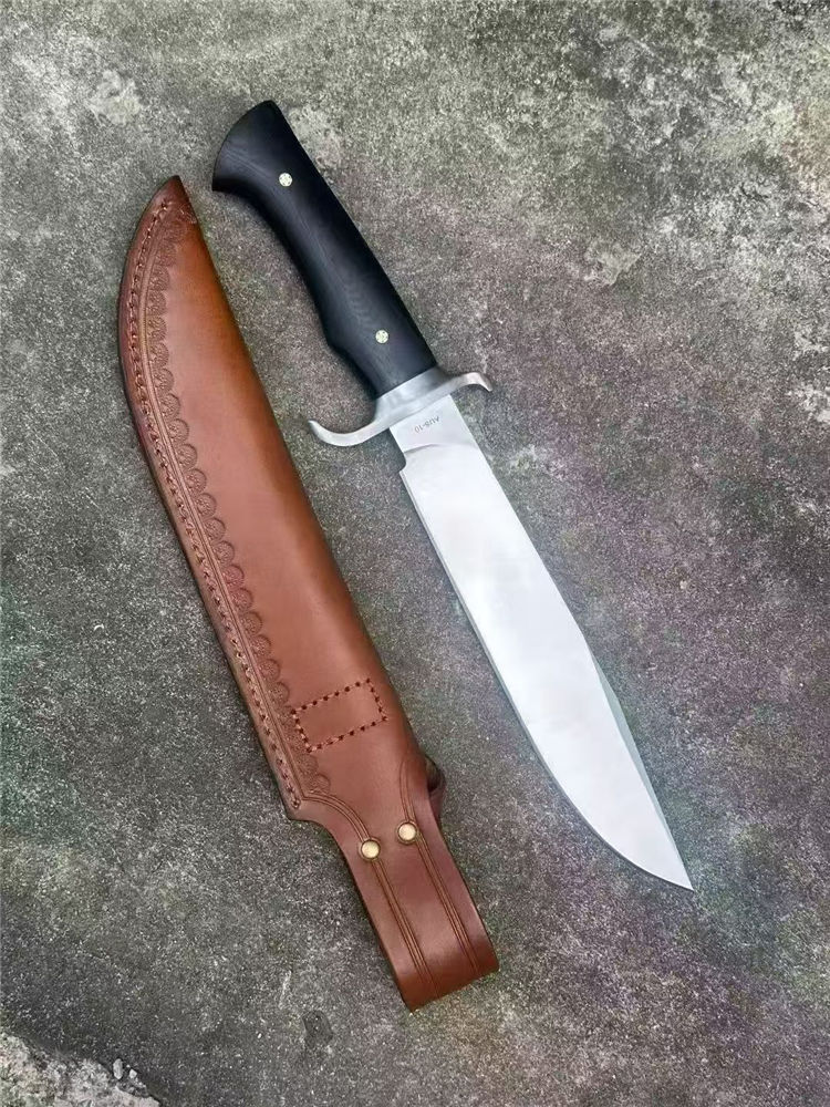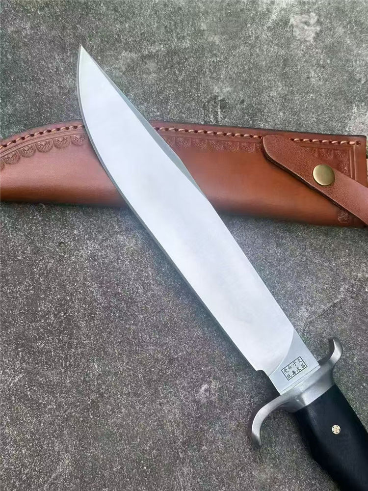 生杀大权博弈直刀 全长:405mm 刃长:270mm 刃厚:6.7mm 刃材:AUS-10钢 硬度:60HRC(真空油冷热处理) 表面:精幼砂光 刃面:大平磨 柄材:G10 配件:手工刀纯铜马赛克铆钉 刀鞘:优质高档纯手工牛皮套 刀重:约650G总重:约980G