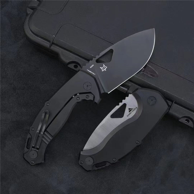 意大利狐狸SK-02OD折刀 全长:22.5cm 刃长:9.4cm 刃厚:4mm 柄长:13cm 刃宽:4.7cm 硬度:59-61HRC 重量:176g(裸刀)247g(含包装) 刀鞘:尼龙刀包 刃材:M390 柄材:7075航空铝 工艺:缎纹,CNC电脑锣精密加工制作