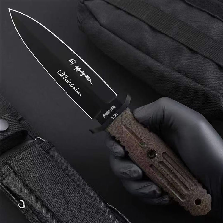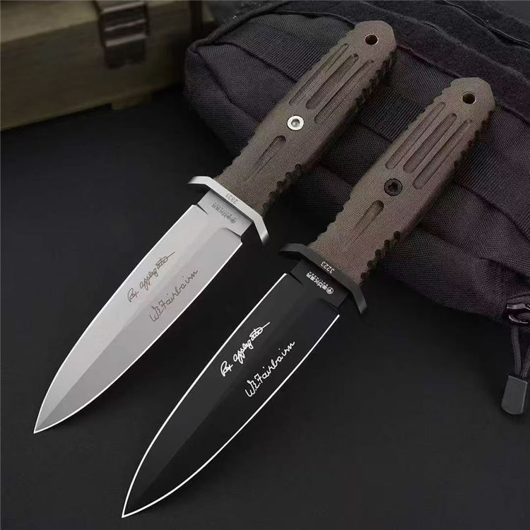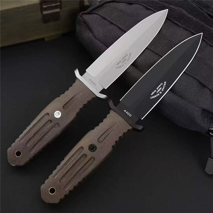 博克阿普盖特军版直刀 总长:27cm 刃长:14.5cm 柄长:12.4cm 刃宽:3.5cm 刃厚:5mm 刃材:440C 柄材:米卡塔 硬度:59-61HRC 重量:357g(含套) 工艺:CNC电脑锣精密加工制作