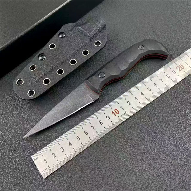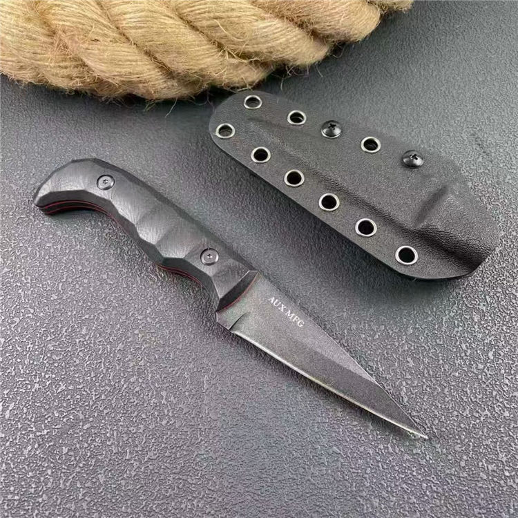 AUX MFG直刀 全长:20cm 刃宽:2.5cm 刃长:8.5cm 柄长:10.8cm 刃厚:4mm 刃材:M390 柄材:一体钢+双色G10 刀重:156G/217G(含梢) 毛量:309G 硬度:58-60HRC