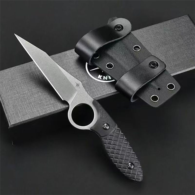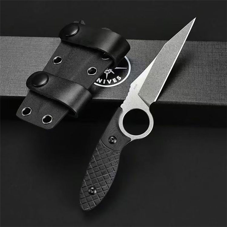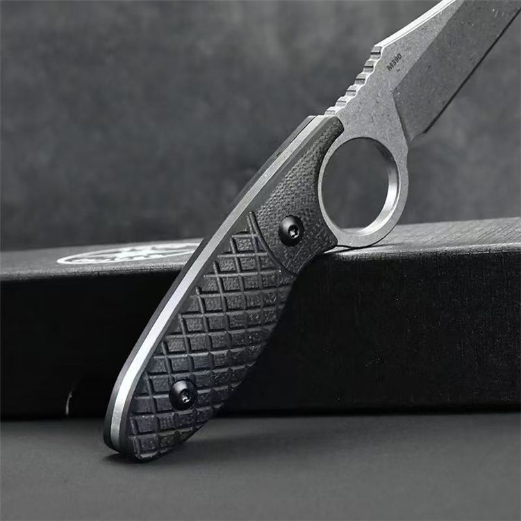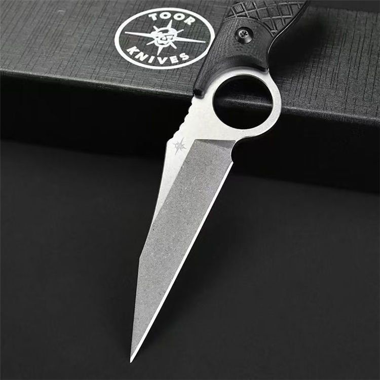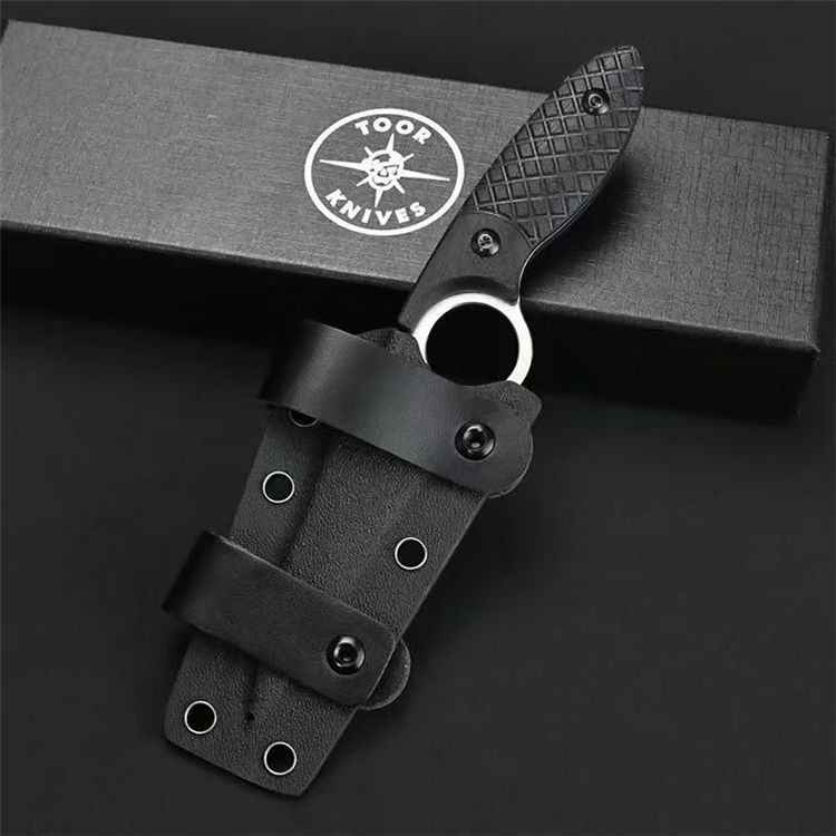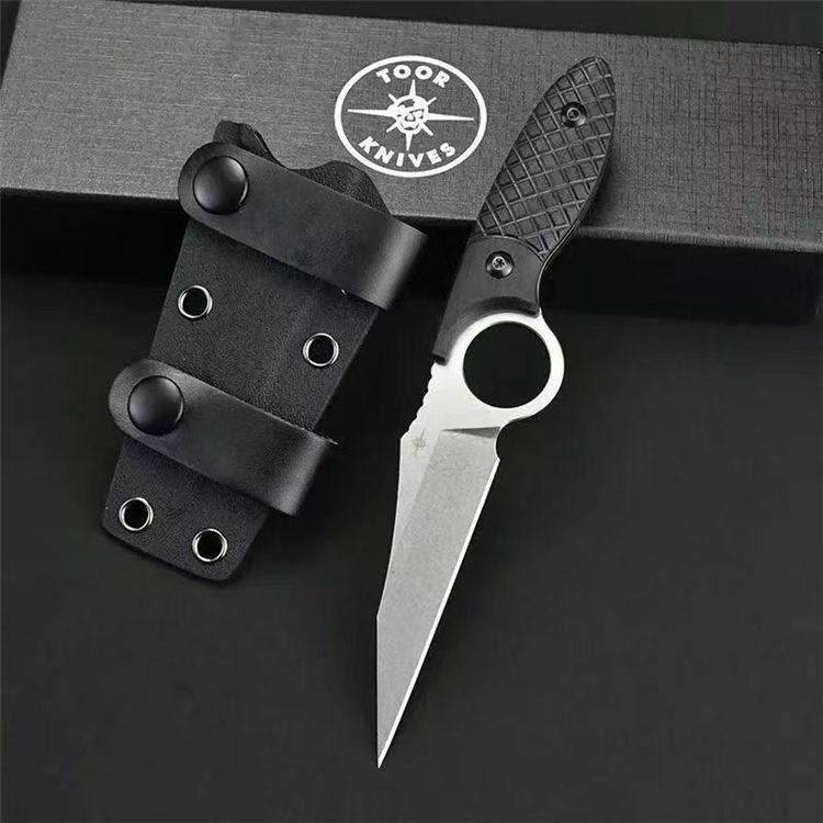 TOOR圣地亚哥指环刺直刀 全长:18.8cm 刃长:8.2cm 柄长:10cm 刃宽:2.5cm(最宽处) 刃厚:4mm 柄厚:1.5cm 柄宽:3.5cm 刃材:8Cr13Mov 柄材:G10 刀重:99G/137G(含鞘) 毛量:213G(含包装) 硬度:58±1HRC