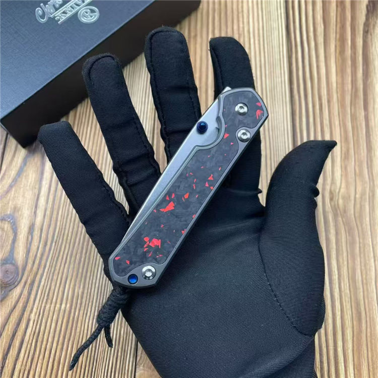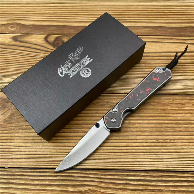 克里斯夫星空折刀 全长:17cm 刃宽:2cm 刃长:6.6cm 柄长:10cm 刃厚:3mm 刃材:8CR14MOV 柄材:钢+碳纤片 刀重:110 毛量:172G 硬度:58-60HRC