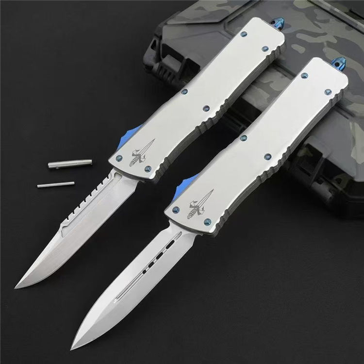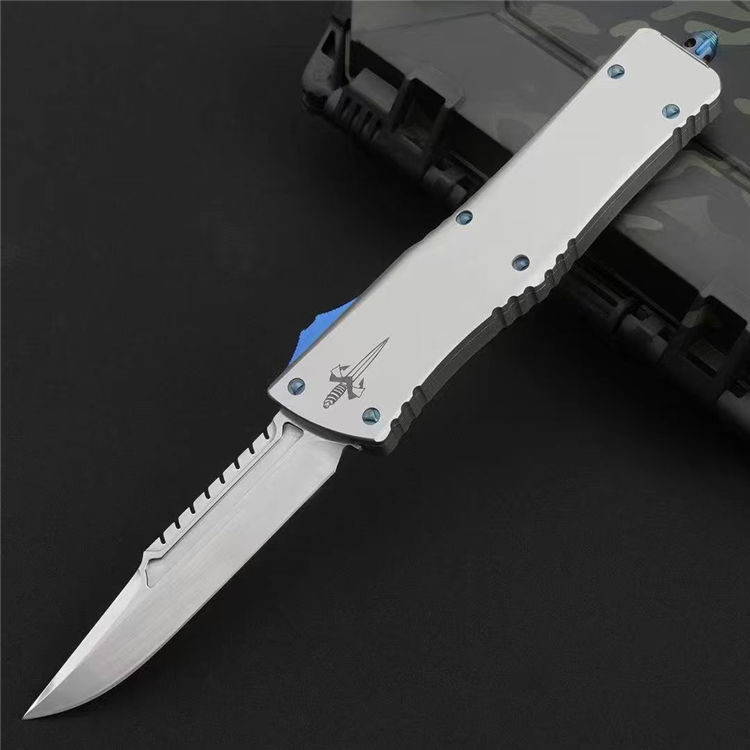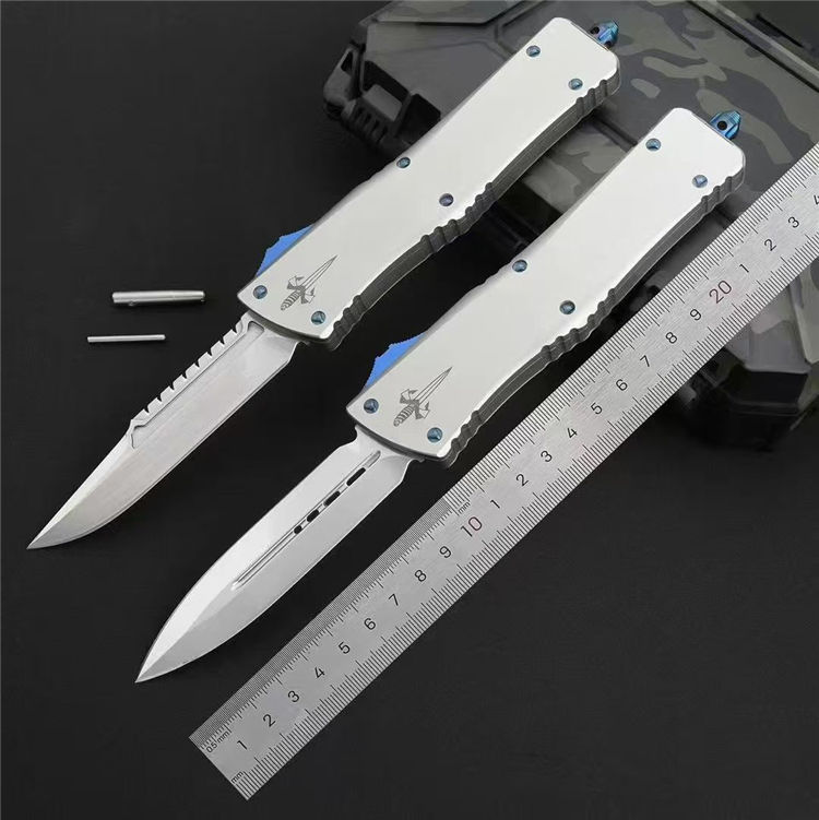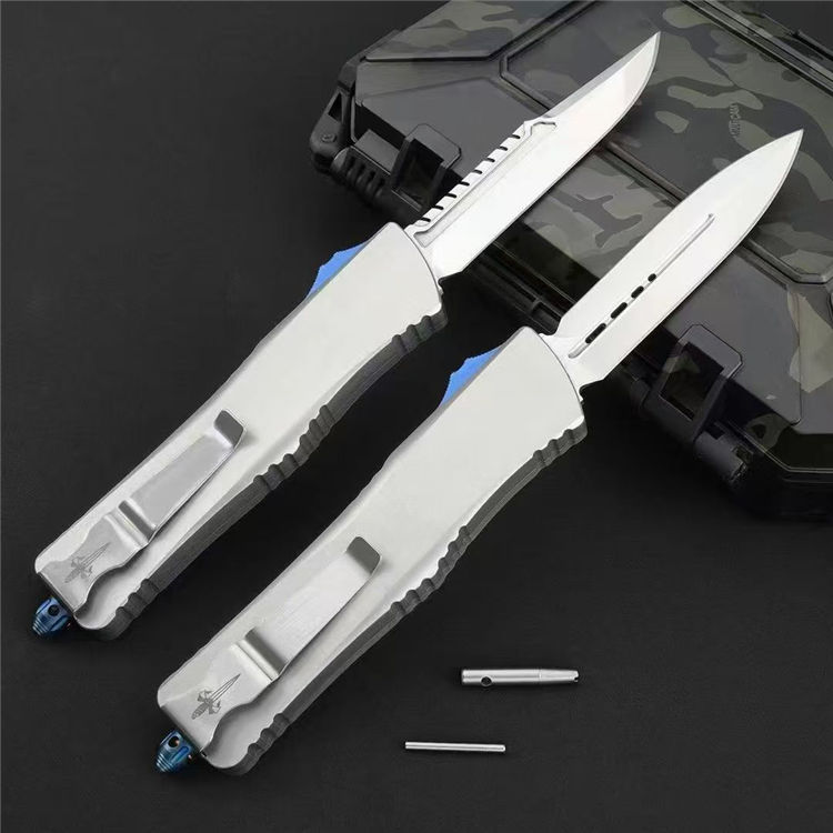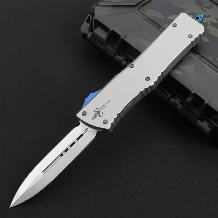 美国微技术大龙镜面版直出跳刀 全长:23.8cm 刃材:D2 刃长:9.5cm 柄长:14.4cm 刃宽:1.9cm 刃厚:0.3cm 柄材:T6航空铝 净刀重量:140克 附件:尼龙布袋,说明书,手动批头 彩盒 整刀用,CNC,电脑锣,线切割制作而成,手工,精密度非常高,很值得收藏的一把刀