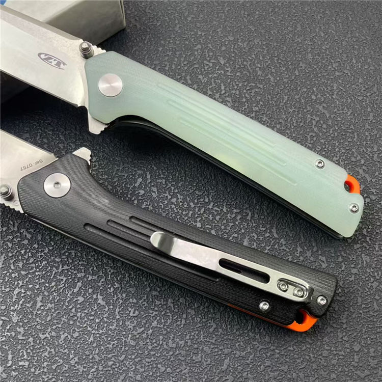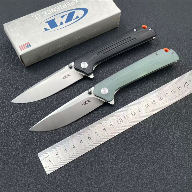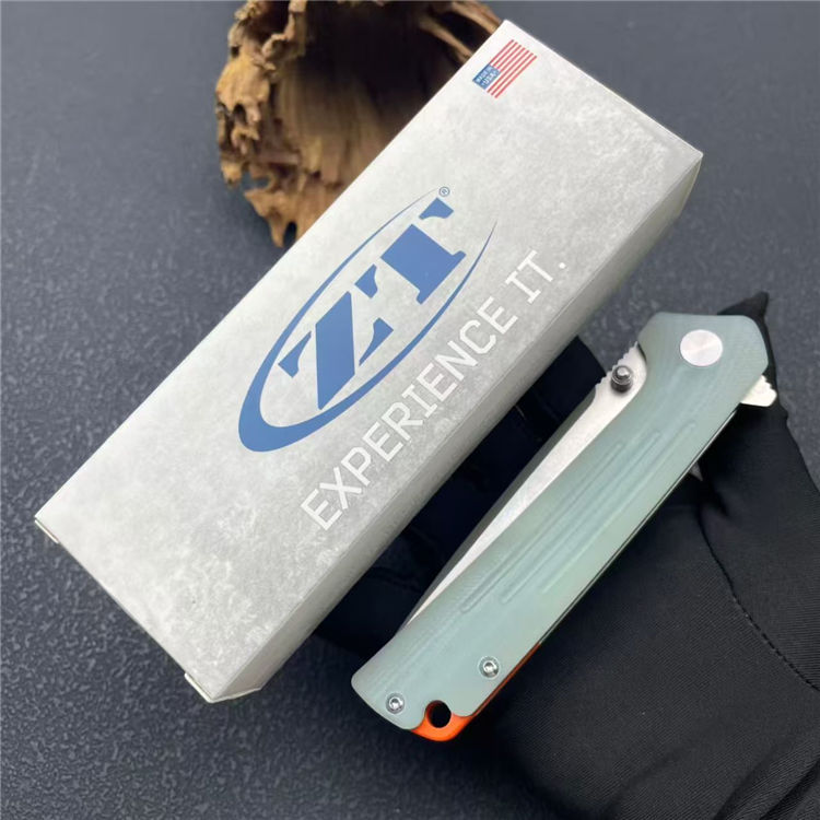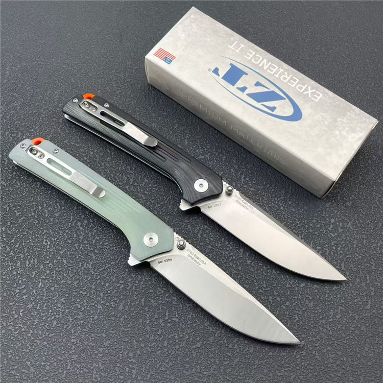 零误差ZT0163折刀 全长:20.5cm 刃宽:2.5cm 刃长:9.3cm 柄长:11.5cm 刃厚:3mm 刃材:CPM20CV 柄材:钢片+G10 刀重:109G 毛量:127G 硬度:59-60HRC 包装:礼盒